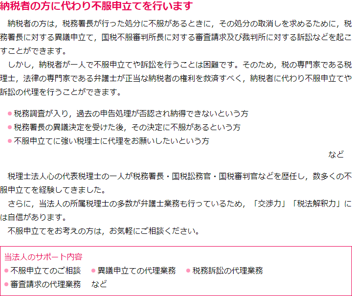 大変申し訳ございませんが,担当税理士の予定が一杯のため,現在, 不服申立てについてのご相談はお受けすることができません。